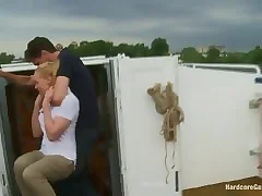 Young and petite catholic gets gangbanged in public
